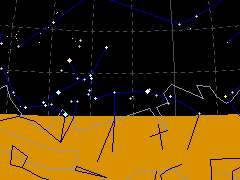 - 沖縄より北の地方では、一部しか見えない南天の星座。春、昇り始めたアンタレスの西側、地平線付近に2等星が2つ見える。