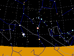 - 夏の南の地平線上に輝く赤い星が1等星のアンタレス。この1等星を含んで2〜3等星の星が、Sの字に連なる。